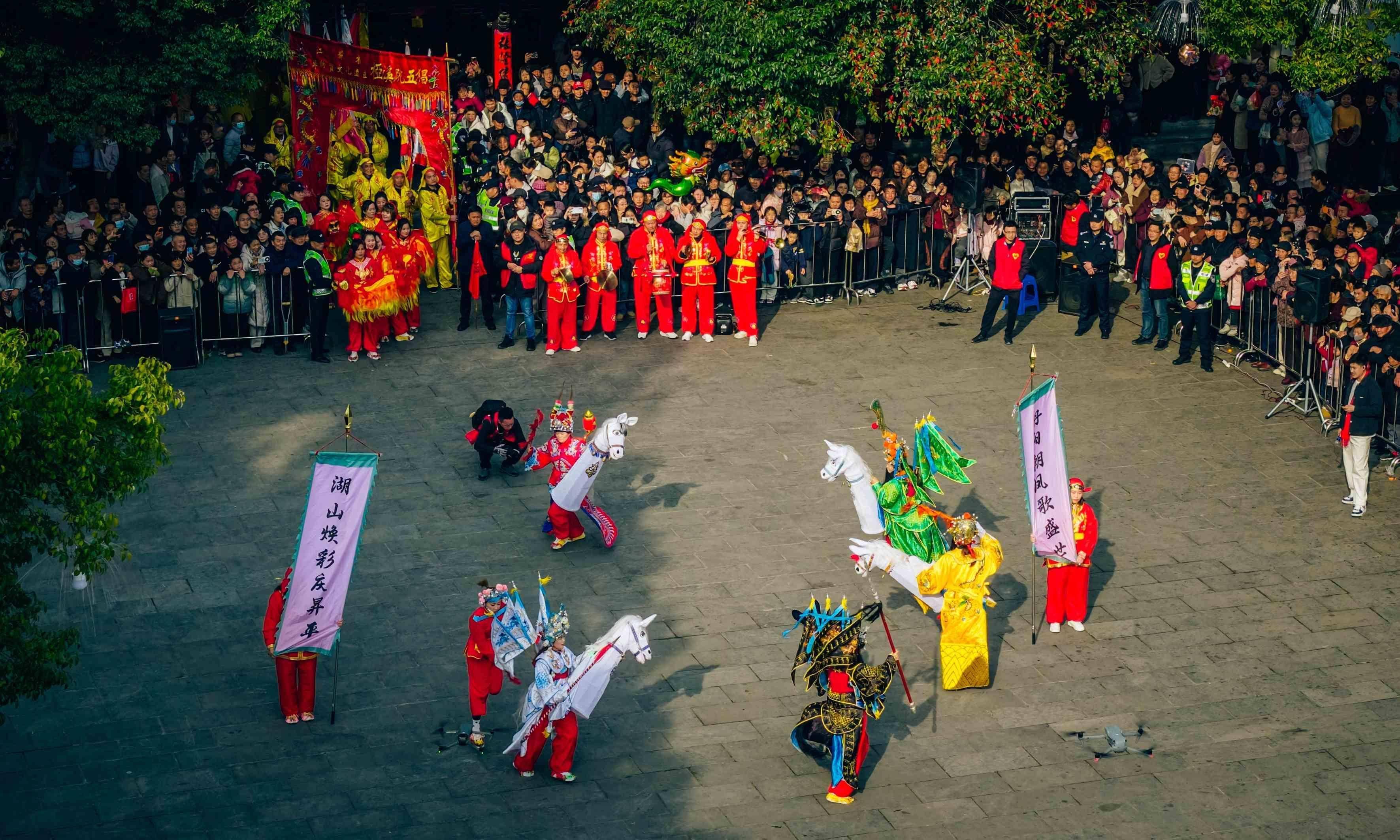 整场巡游堪称一场流动的“非遗盛宴”,16个非遗民俗节目轮番上演,将传统年味与非遗文化深度融合,吸引了众多市民游客驻足观赏。